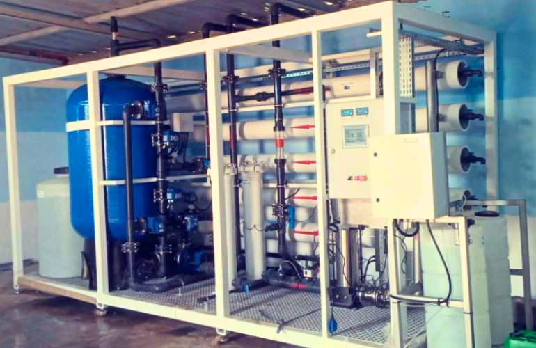 ‘usine d’osmose inverse d’eau saumâtre moyenne est livré avec des prétraitements tels que des filtres multimédias pour éliminer les particules, les filtres à charbon actif pour éliminer le chlore, l’odeur et la couleur, un adoucisseur d’eau avec réservoir de saumure pour enlever la dureté, et d’un stérilisateur UV pour tuer les bactérie.